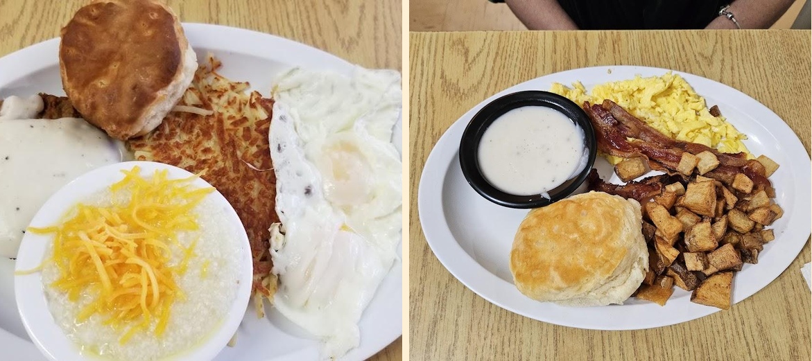 The famous southern grits feature heavily in positive reviews, reminding everyone of home-cooked meals.